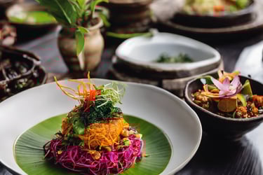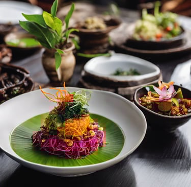 Must-try foods: Nasi Campur (mixed rice with veggies and tofu), Gado-Gado (veggies with peanut sauce), and fresh smoothie bowls.
